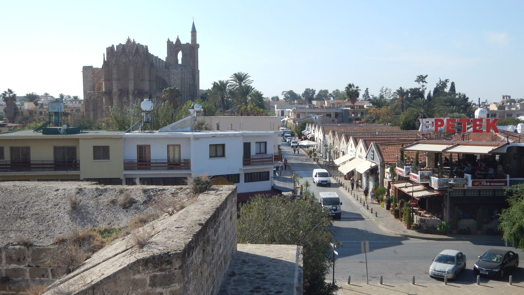 Die Fahrt geht weiter nach Famagusta, und durch die dicke Stadtmauer hindurch betreten wir den Ort. Die Altstadt ist von einer 3.500 Meter langen Festungsmauer umgeben. Ihre Ursprünge stammen aus dem 14. Jahrhundert, und sie ist noch weitgehend original erhalten. Von ihrer Brüstung aus hat man einen guten Blick in die Umgebung.